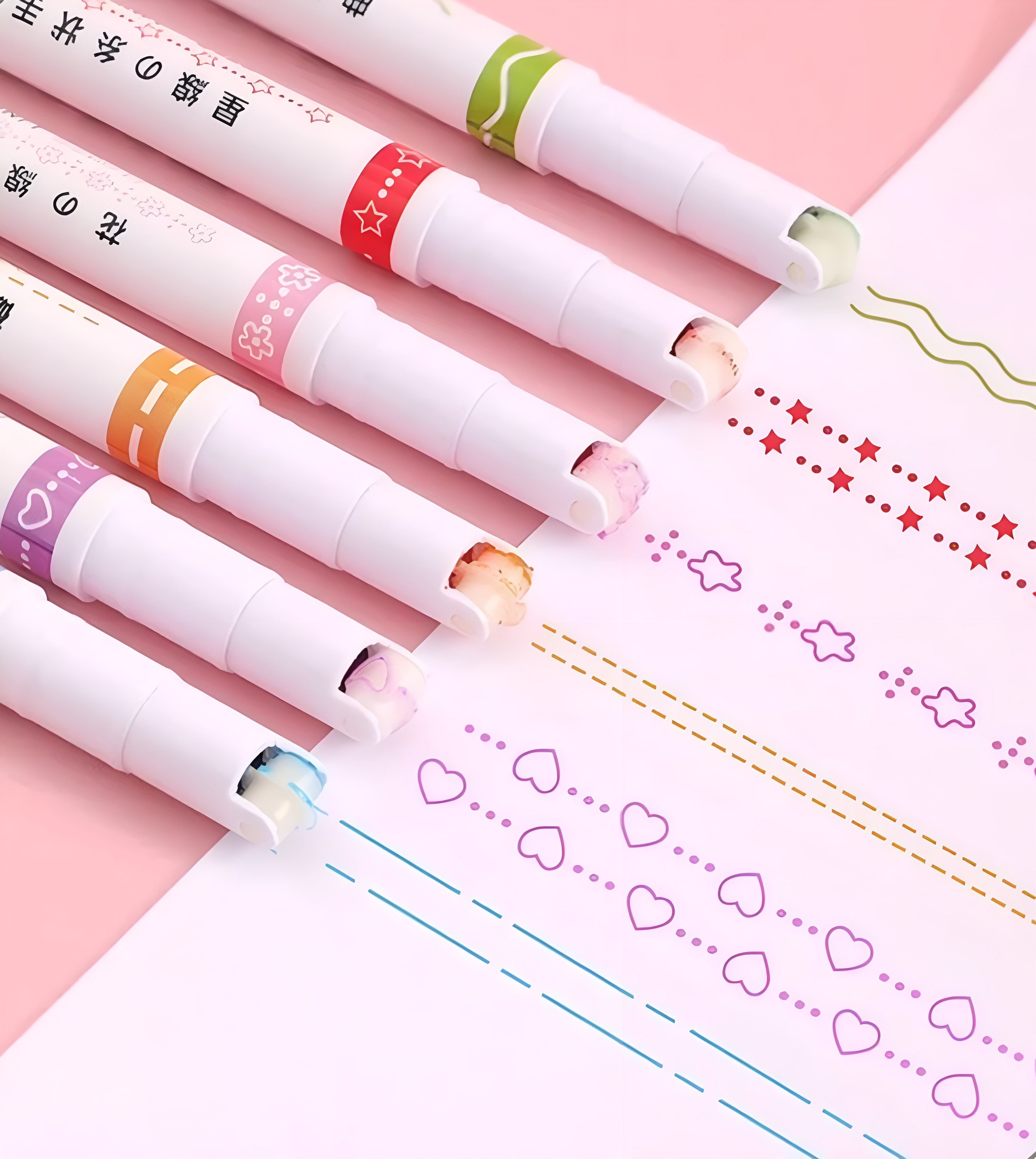 6pcs Set Kawaii Flowers Line Shaped Highlighters Pens Roller Etsy